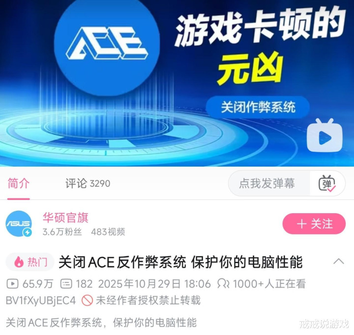事件始于华硕官旗B站账号发布的一则名为《关闭ACE反作弊系统,保护你的电脑性能》的视频。在这则视频中,华硕毫不留情地指出ACE反作弊系统的种种问题。 视频中,华硕直言不讳地声称:腾讯ACE可能防不住外挂,但一定会扫爆你的硬盘。 这种直白的表述迅速吸引了大量玩家关注。 华硕还具体描述了ACE反作弊系统的罪状:无论是玩瓦还是三角洲,ACE都会在后台对你的硬盘进行疯狂扫描。 他们声称这种扫描会造成大量内存占用,最终导致游戏卡顿、掉帧。 更绝的是,华硕还在视频中亲自指导玩家如何解决ACE反作弊系统的问题,俨然一副为民请命的姿态。